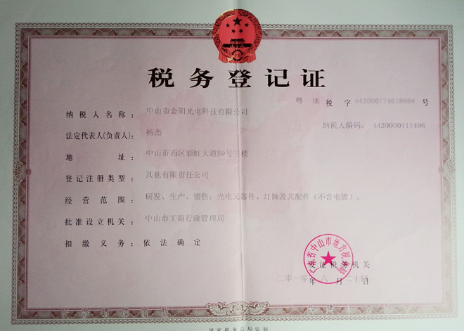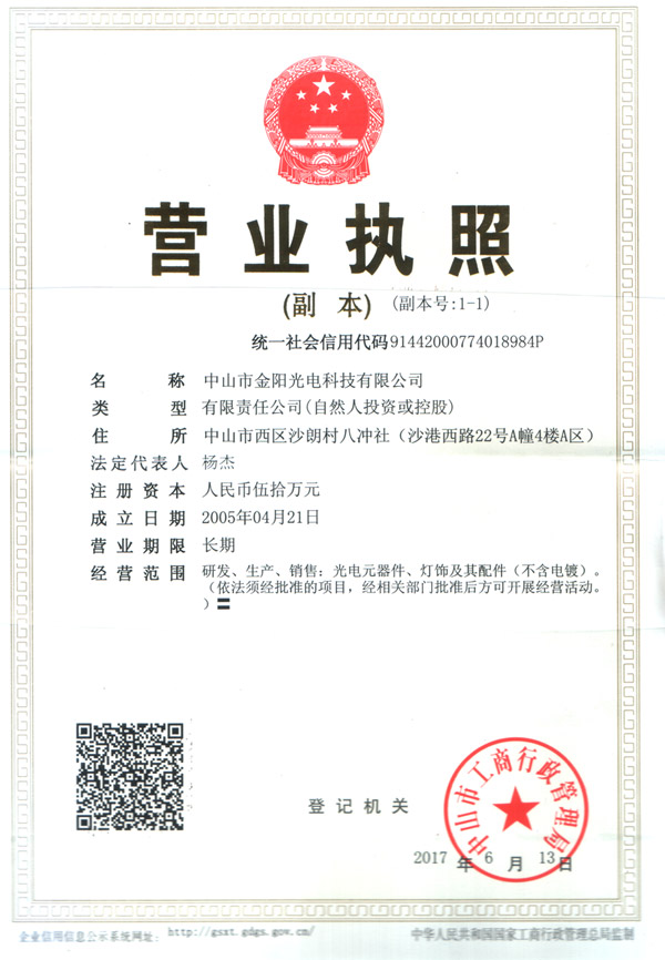 中山市金阳光电科技有限公司 地址:广东省中山市西区金昌工业路17号1幢2楼
